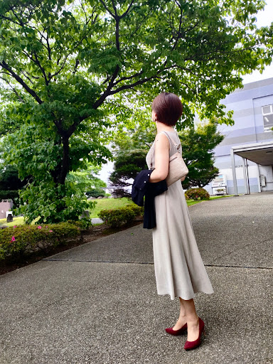 トップページ > 20250608-12三木真紀グレージュスクエアネックワンピース&黒カーディガン玉村町文化センター