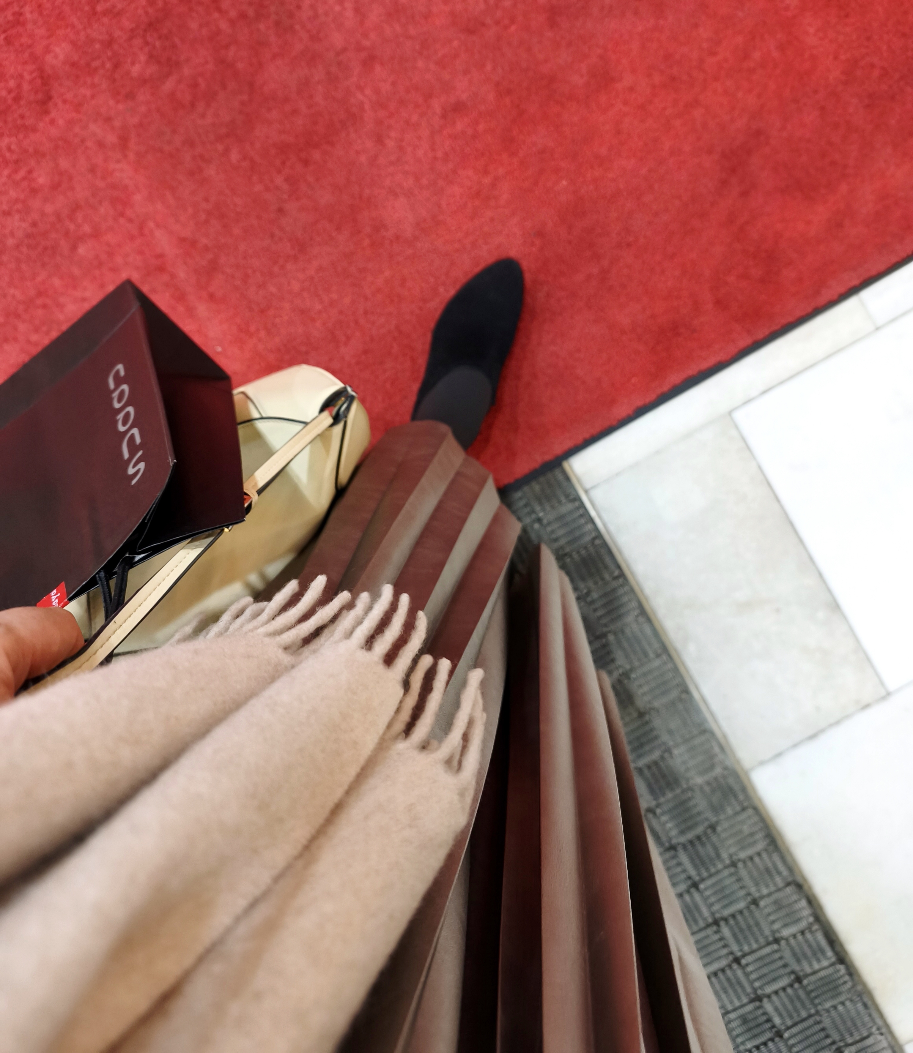 トップページ > 20251023-5三木真紀黒ボートネックニット&ブロンズプリーツスカート&カミミヤストール