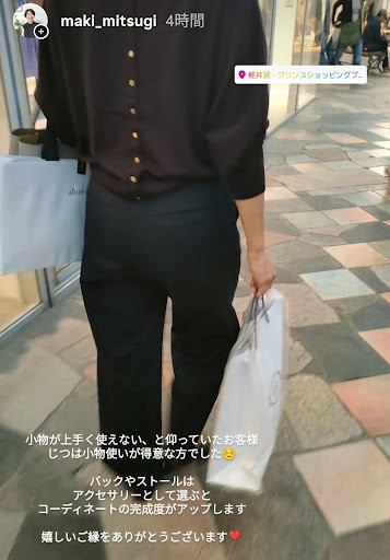 お化粧お見立てのショッピング同行では、軽井沢で購入されたバックとストールを身につけてきてくださいました。
