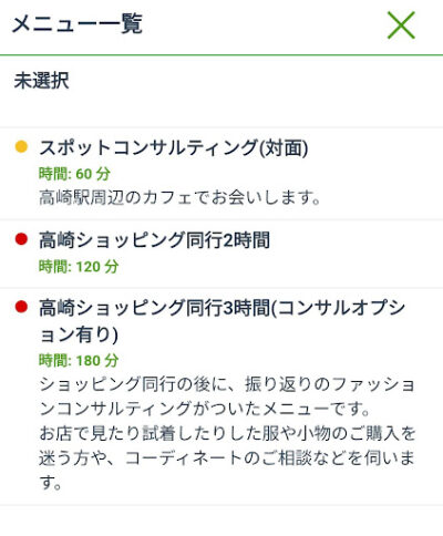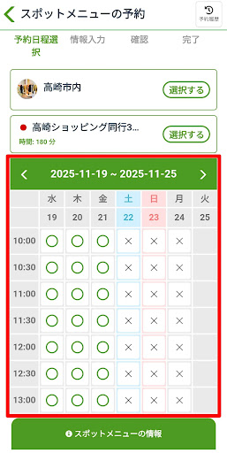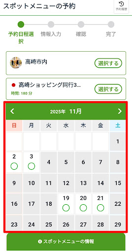 4.ご希望のメニュー(プラン)をタップすると、予約カレンダーが表示されます。