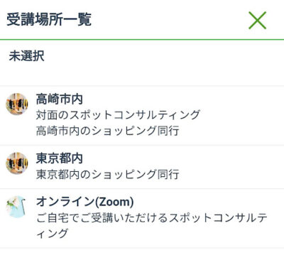 1.受講場所 [ 選択する ] をタップすると、受講場所一覧が表示されます。
