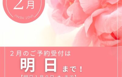 • 【明日1月8日(金)まで】2月のご予約受付は、明日1月8日(金)まで承っております。NEW !