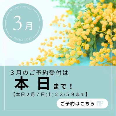 今月募集しておりました「スポットメニュー」ですが、 いよいよ本日23:59をもちまして、受付を終了させていただきます。