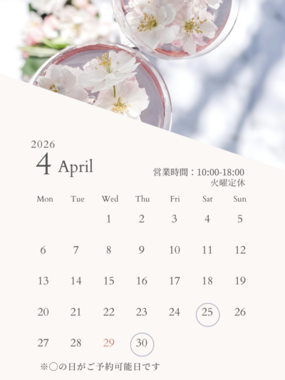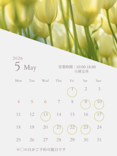 🗓️ 4月下旬〜5月のご予約可能日を増やしました!